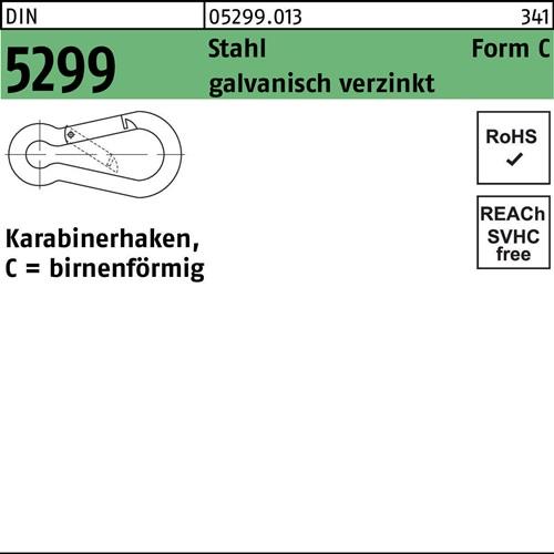 DIN 5299 Stahl Form C galvanisch verzinkt Karabinerhaken · birnenförmig – Abmessung: C 80 x 8 VE=S (50 Stück)