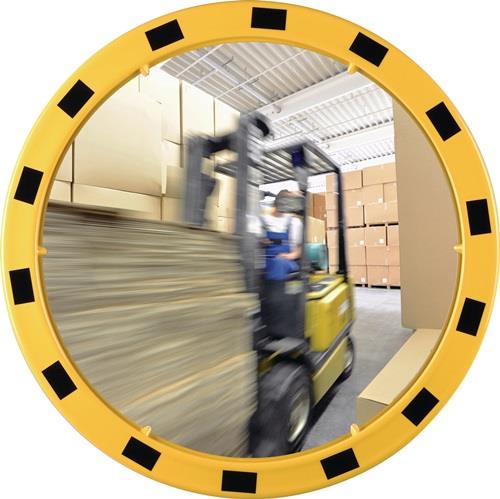 für innen · EUvex Industriespiegel · Acryl · gelber Rahmen mit schwarzer Warnmarkierung · inkl. Standardhalterung zur Wand- und Pfostenmontage