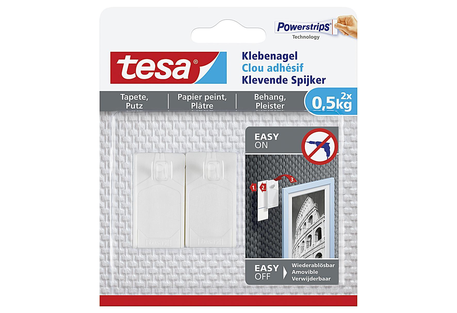 TESA Klebenagel Powerstrips Tapete und Putz 0,5kg 2 StückrnLieferumfang: 8 VPE