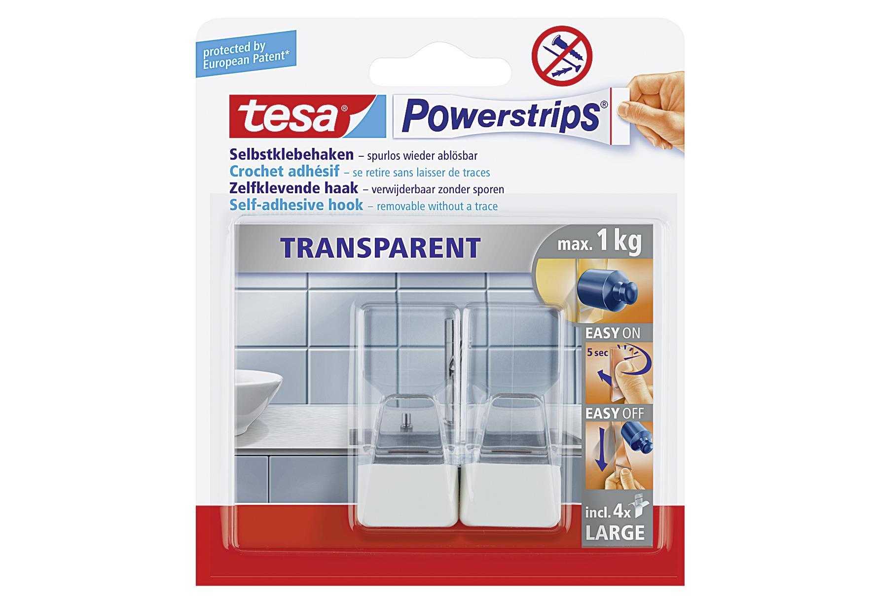 TESA Haken Powerstrips Large transparent/weiß 2 StückrnLieferumfang: 8 VPE