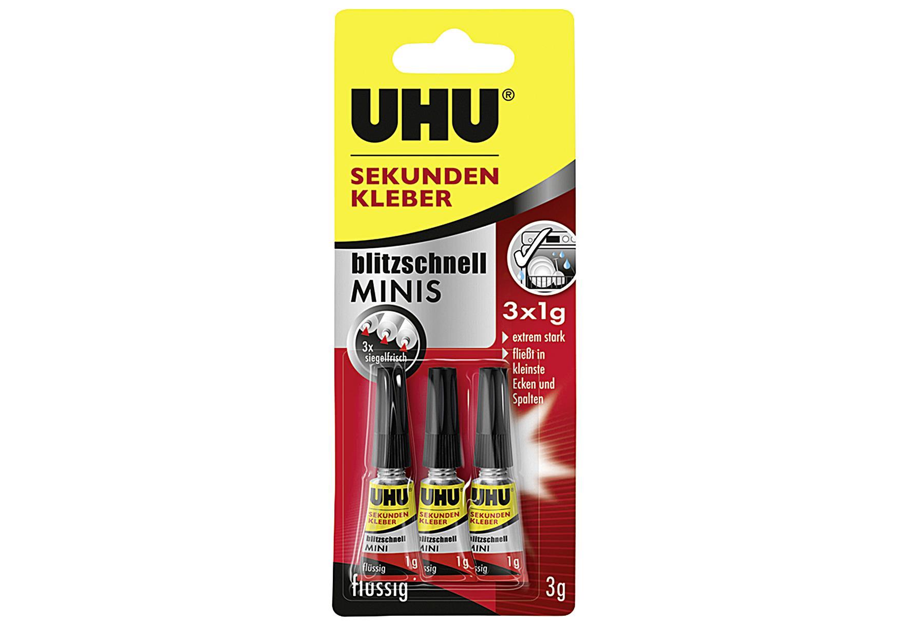 UHU Sekundenkleber blitzschnell Minis flüssig 3x 1grnLieferumfang: 10 VPE